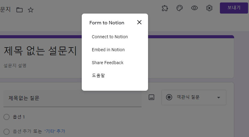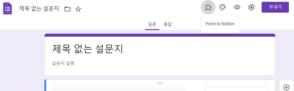 △ 설치한 후 구글 설문지로 들어가면 새로운 버튼이 생긴 것을 확인할 수 있습니다.