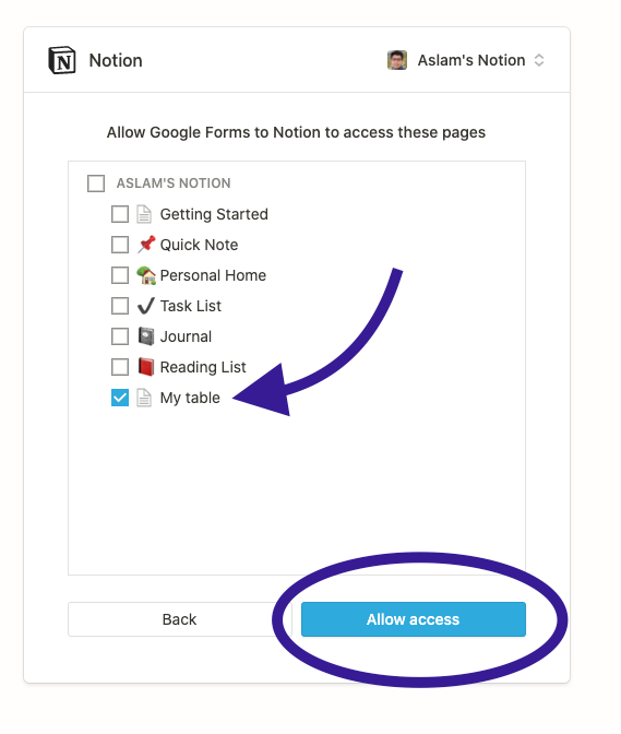 △ 원하는 페이지를 선택하고 Allow access 버튼을 클릭해주세요.
